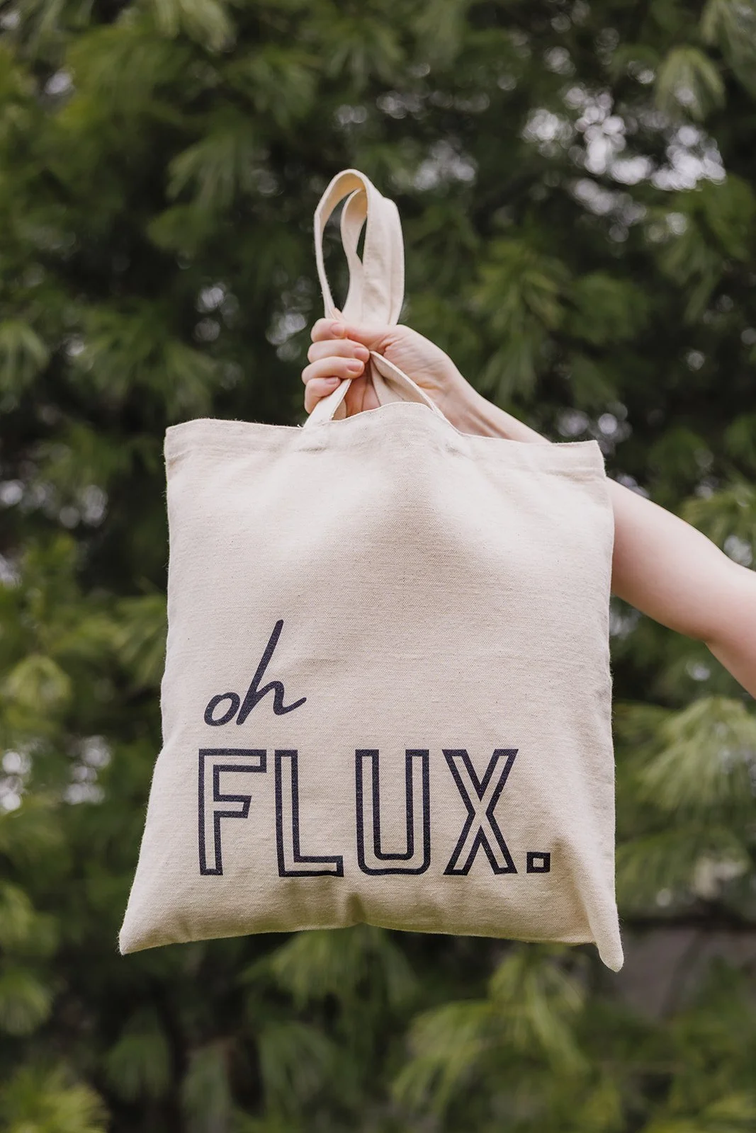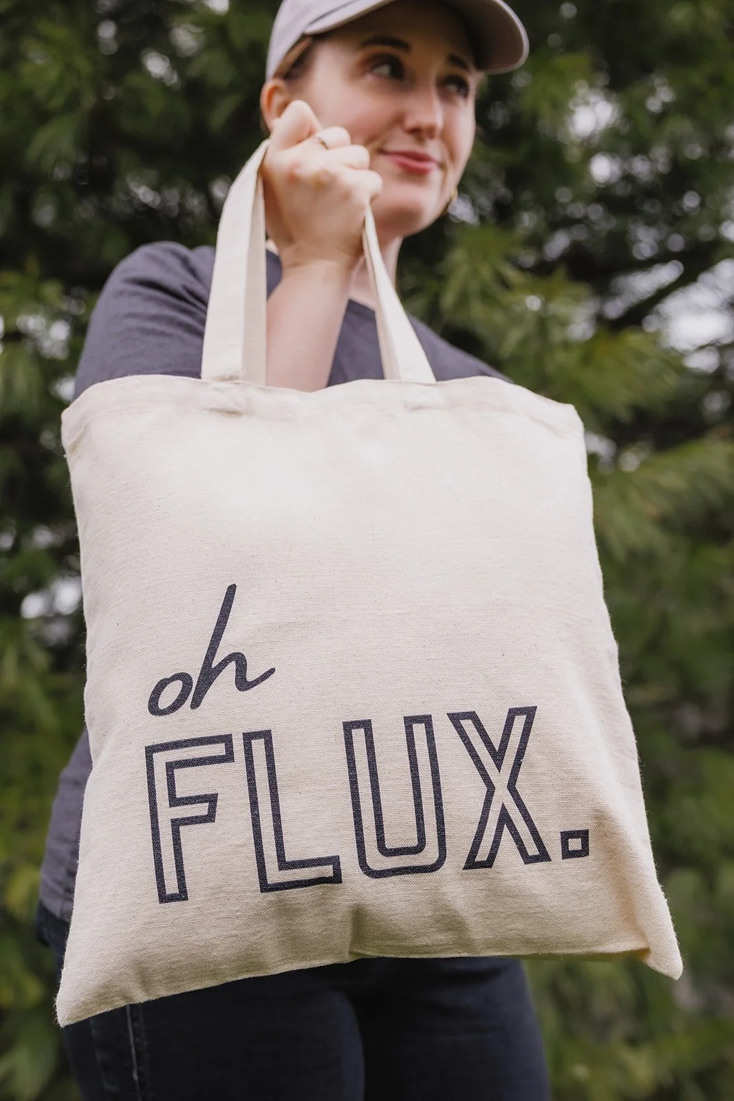 Oh Flux! Make folks do a double-take and show off your love of stained glass with this high-quality tote bag! Durable 100% cotton material and roomy size makes it the perfect tote for hauling your tools and supplies to and from your local studio, or even just grabbing groceries or running weekend errands.