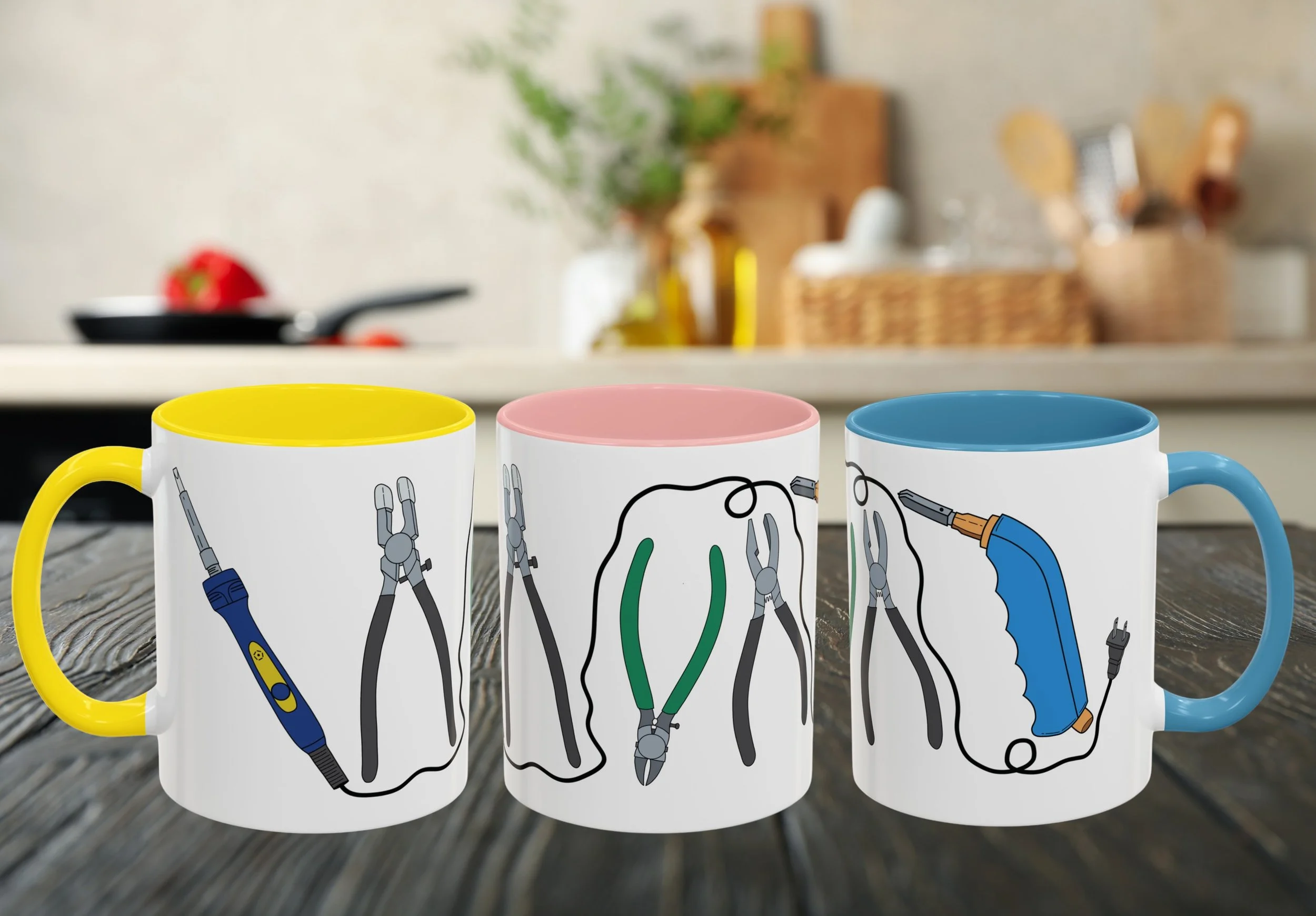 Available in multiple colors (yellow, pink, red, black, or blue interior and handle), it adds a bright pop of personality to your workspace or kitchen.