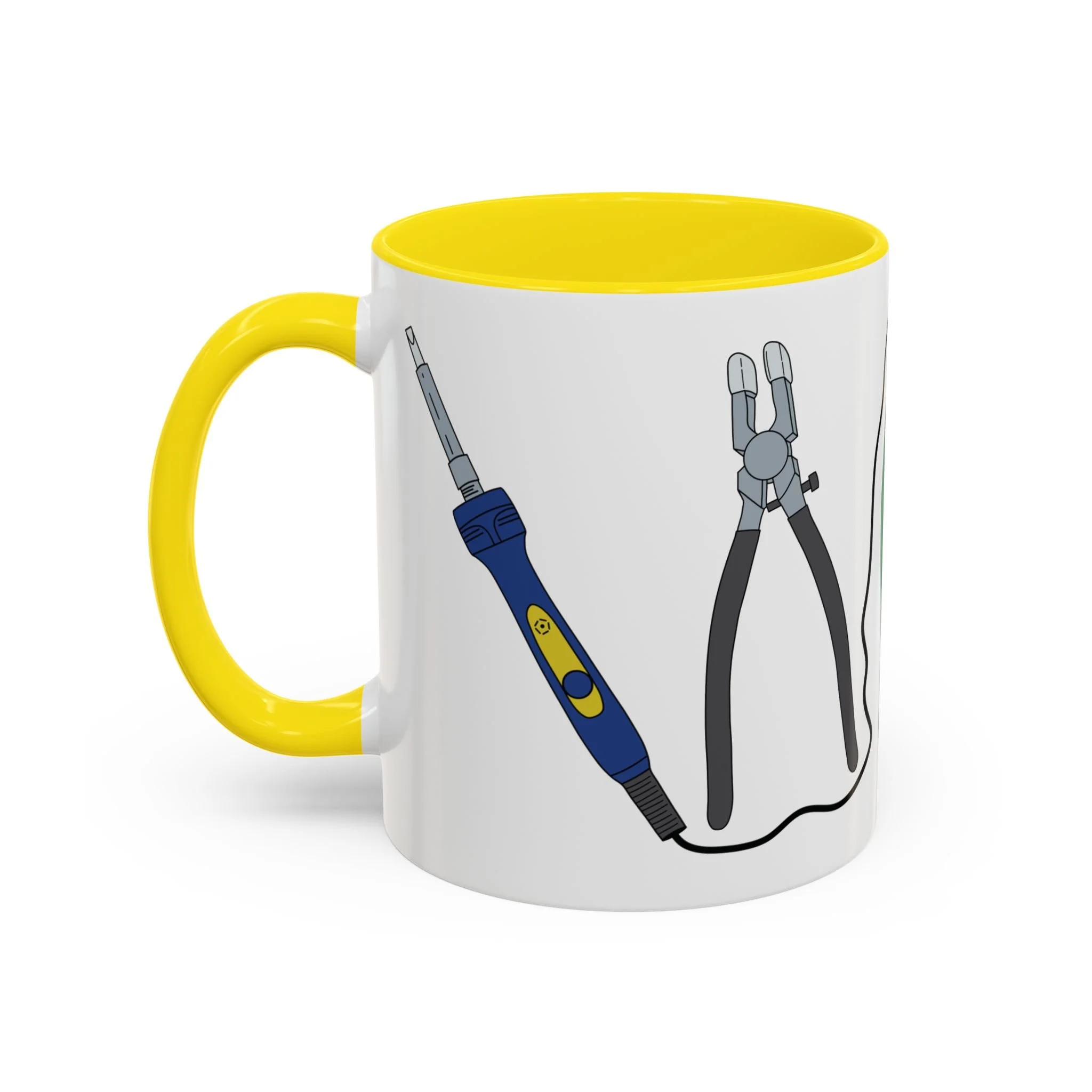 Start your studio sessions with a sip of inspiration! This colorful ceramic mug is a tribute to every stained glass artist’s favorite tools, featuring detailed illustrations of a soldering iron, breaking pliers, running pliers, lead nippers, and a trusty glass cutter. Whether you're gearing up for a long soldering session or taking a well-earned break, this mug is the perfect companion.